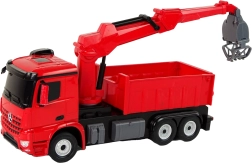 Dit gedetailleerde model van een MERCEDES-vrachtwagen met functionele kraan en grijper stimuleert creatief spel, en de ontwikkeling van motoriek en verbeelding. De bediening verloopt via een afstandsbediening – rijden vooruit/achteruit en draaien, terwijl de lampen een realistische sfeer toevoegen.