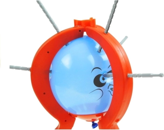 Het spel Barstende Ballonnen is eenvoudig te leren en geweldig voor het hele gezin. Spelers gooien om de beurt de dobbelsteen en drukken de stokjes naar de ballon volgens het aantal punten. Naarmate de stokjes dichterbij komen, neemt de spanning toe – wie de ballon laat barsten, verliest!
