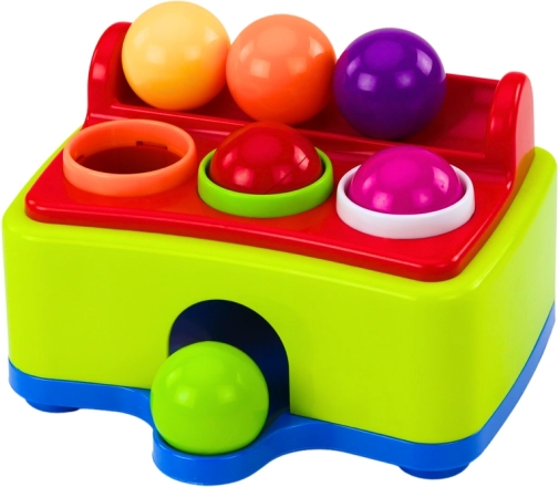 Zes kleurrijke knikkers en gaten in de tafel nodigen kinderen uit om herhaaldelijk te hameren, wat grip, precisie en coördinatie versterkt.