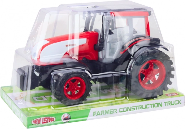 De gedetailleerde cabine, robuuste wielen en het contrasterende rode ontwerp zorgen voor de authentieke look van een echte tractor.