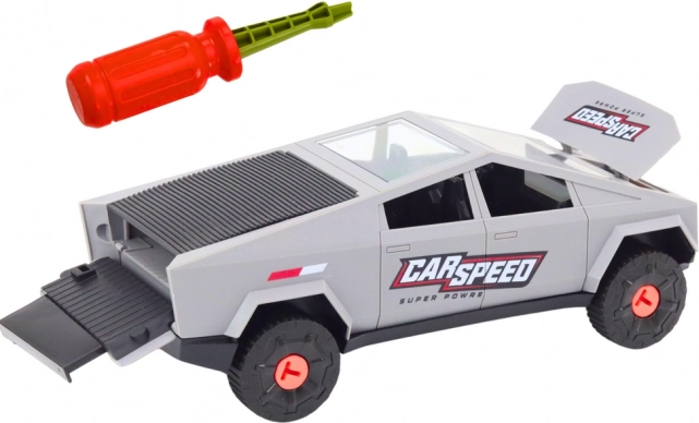 Een leuke en leerzame montageauto in een elegante grijze kleur voor kleine bouwers. Met de meegeleverde schroevendraaier kunnen kinderen het voertuig uit elkaar halen en weer in elkaar zetten, waardoor ze hun fijne motoriek en begrip van mechanica ontwikkelen. Het product is gemaakt van hoogwaardige materialen, heeft de certificering CE en voldoet aan de norm EN71. Geschikt voor kinderen vanaf 3 jaar.