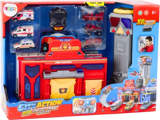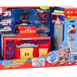 Deze multifunctionele set verandert de kinderkamer in een echt reddingscentrum. De basis omvat segmenten van een brandweerpost en ziekenhuis, een daktoren met landingsplatform en accessoires voor het aansturen van acties. Voertuigen kunnen naar beneden rijden via de dynamische helling, terwijl de binnenruimte dienstdoet als opbergvak. Dankzij het handvat is het hele station gemakkelijk mee te nemen als koffertje.