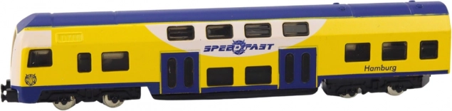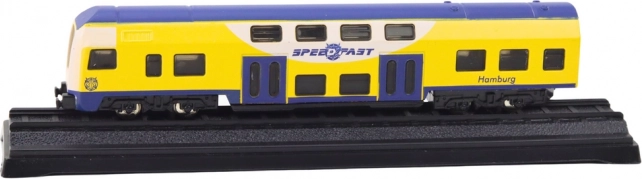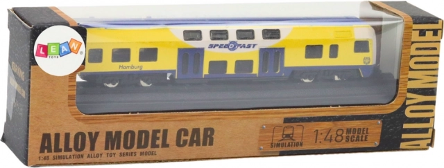 Ontdek een zorgvuldig uitgewerkt model van een hogesnelheidstrein met de opschriften “Hamburg” en “Speedfast”, dat indruk maakt met zijn natuurgetrouwe schaal en metalen behuizing. Realistische proporties op schaal 1:48, strakke lijnen en verfijnde details zoals ramen en deuren benadrukken de verzamelwaarde.