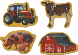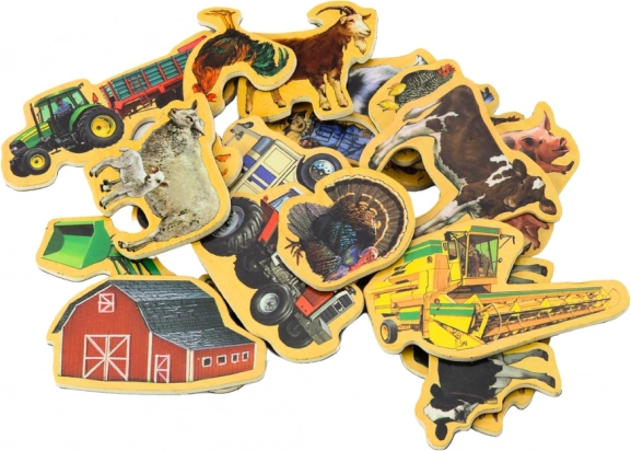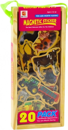 De kinderset houten magneetjes met boerderijthema brengt kleurrijke afbeeldingen van boerderijdieren en landbouwmachines. Kinderen kunnen hun eigen verhalen maken, sorteren, benoemen en ontdekken wat bij het platteland hoort en hoe het er op de boerderij aan toe gaat. De magneetjes hechten stevig aan metalen oppervlakken, ideaal voor op de koelkast of een magneetbord.