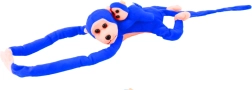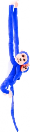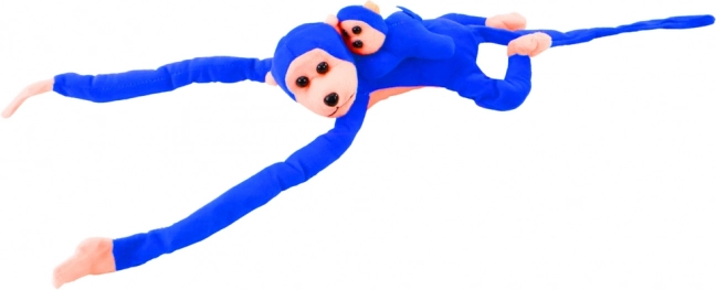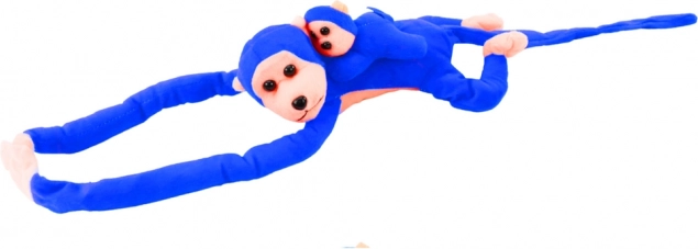 Een schattige pluchen aap met baby in een diepblauwe kleur is de ideale metgezel voor kinderen. Hij heeft een zacht en aaibaar design, lange ledematen met klittenbandstrips om aan een handvat of bedje te bevestigen, en een lengte van 70 cm die uitnodigt tot knuffelen en spelen.