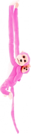 Deze grote roze pluchen aap met schattig jong is ideaal voor dagelijks spelen en rustgevende knuffels. Dankzij de lange armen en benen met klittenband kunnen kinderen hem om de pols, aan het ledikant of aan de schooltas bevestigen – plezier en decoratie in één.