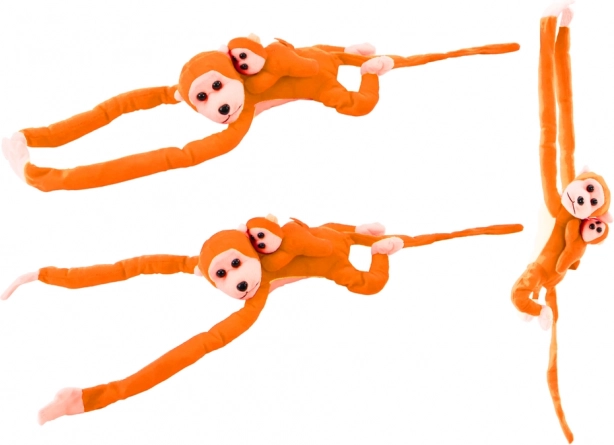 De pluchen aap met oranje vacht is ontworpen om een zachte en gezellige metgezel voor kinderen te zijn.
