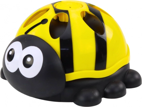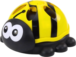 De geel-zwarte kleurencombinatie met grote tekenfilmogen zorgt ervoor dat het lieveheersbeestje de aandacht trekt van elk kind.