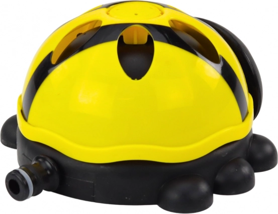 Gewoon aansluiten op een tuinslang en het lieveheersbeestje begint waterplezier alle kanten op te spuiten.