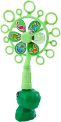 Eenvoudig de oplossing in de kom gieten en het windmolentje comfortabel erin dopen. Het groene reservoir in dinosaurusvorm spreekt kinderen meteen aan.
