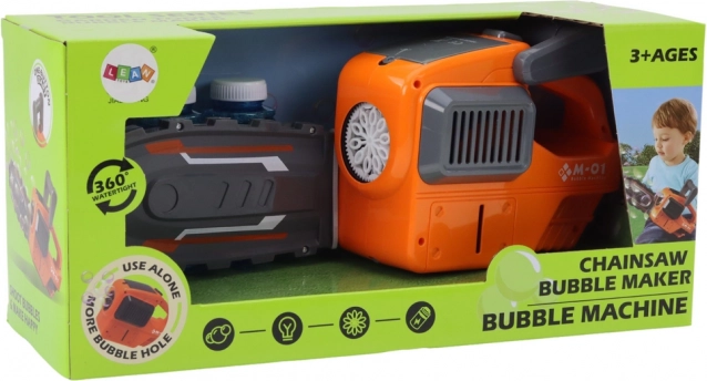 Kettingzaag met oranje zeepbellen