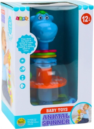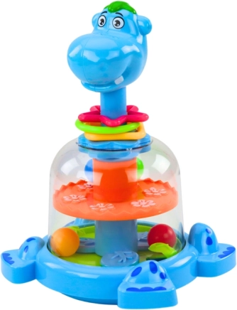 De interactieve nijlpaard verrast met vrolijke kleuren en eenvoudige bediening. Door op het hoofdje te drukken gaat het wieltje in het buikje draaien en komen 4 gekleurde balletjes in beweging. Kinderen volgen hoe de balletjes stuiteren en van richting veranderen, wat hun nieuwsgierigheid en concentratie prikkelt.