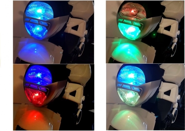 De voorste LED-lamp schijnt in meerdere kleuren voor een aantrekkelijke look en betere zichtbaarheid tijdens het rijden.