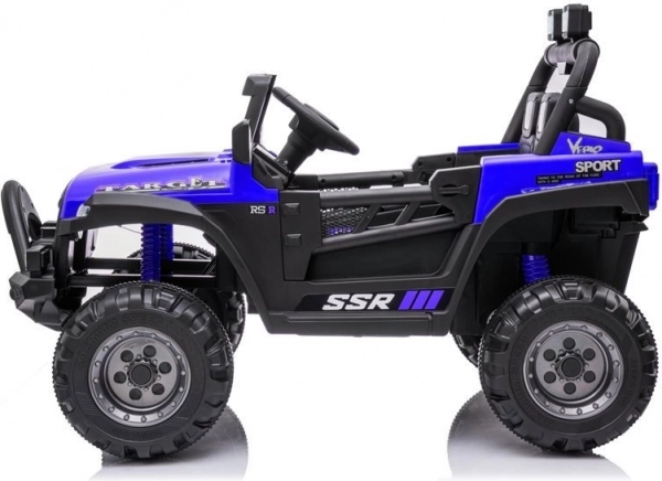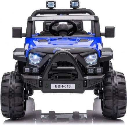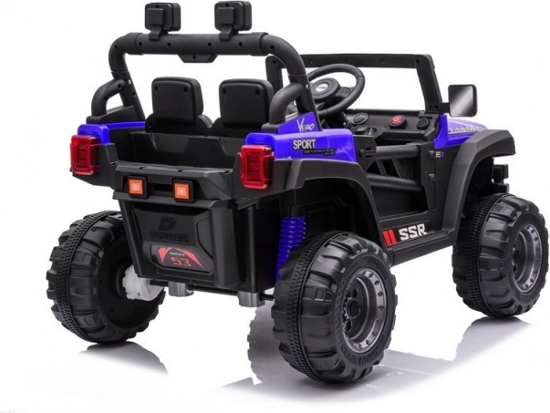 Stijlvolle elektrische kinderauto in blauwe kleur die jonge bestuurders een realistische rijervaring biedt. Twee motoren van 45 W zorgen voor een soepele prestatie, terwijl zachte EVA-wielen, een stoel van eco-leer en veiligheidsgordels comfort en veiligheid garanderen. Ouders zullen de 2,4 GHz afstandsbediening waarderen, kinderen de voorste LED-koplampen en het audiosysteem met MP3/USB/SD. Geschikt voor kinderen vanaf 3 jaar, draagvermogen tot 30 kg.