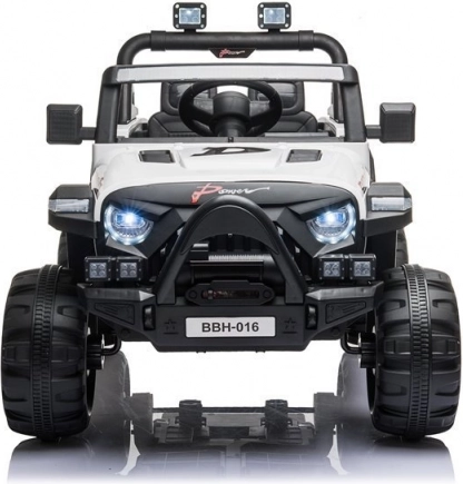 Geïntegreerde koplampen, geluidseffecten en robuuste wielen benadrukken de avontuurlijke look geïnspireerd op offroad-voertuigen. Ideaal voor buiten rijden op harde ondergronden – op het erf, trottoir of de oprit.