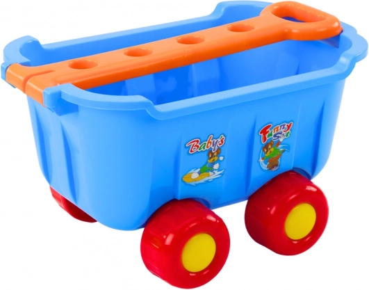 De set strandspeelgoed is een perfecte keuze voor elk kind dat graag buiten speelt en van zandspelletjes houdt. Het hoofdelement van de set is een blauw wagentje op wieltjes, waarmee speelgoed eenvoudig kan worden vervoerd, zelfs op oneffen terrein zoals het strand of de speeltuin. Het wagentje is ontworpen met oog voor het comfort van kinderen en voorzien van een comfortabele hendel.