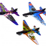 Drie vliegtuigen in levendige kleuren met motieven zoals een panter en een adelaar, ideaal om de verbeelding te stimuleren en motorische vaardigheden te ontwikkelen.