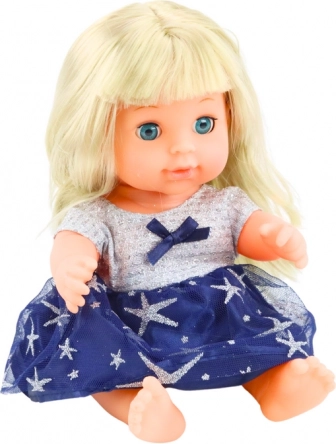 Elegante pop in matrozenjurk met lang blond haar biedt haarstyling met verschillende kapsels. De realistische ervaring wordt ondersteund door beweegbare ledematen en sluitende ogen die nabootsen hoe een baby zijn ogen sluit tijdens het slapen.
