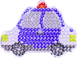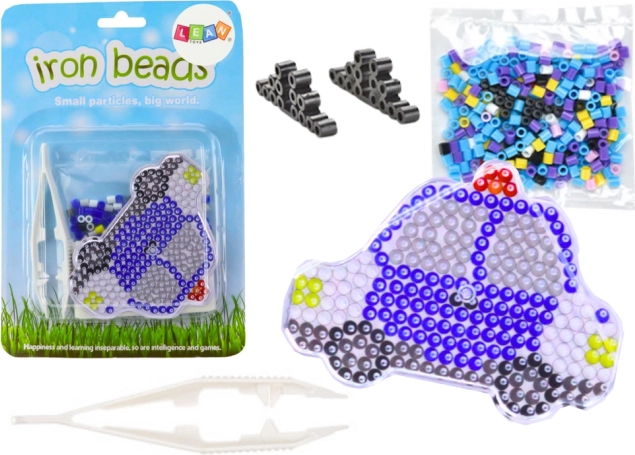 De set biedt gekleurde kralen waarmee een patroon kan worden gemaakt met behulp van de bijgevoegde pincetten. Kinderen oefenen op deze manier hun hand-oogcoördinatie en bewegingsprecisie. Na het voltooien van het patroon, bedek je de kralen met speciaal papier en strijk je ze. Het resultaat is een duurzame, kleurrijke afbeelding van een autootje, dat kan dienen als decoratie of origineel cadeau.