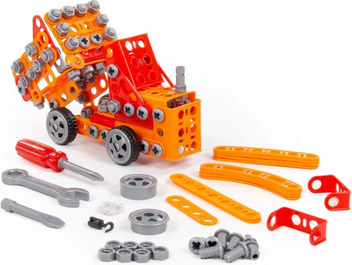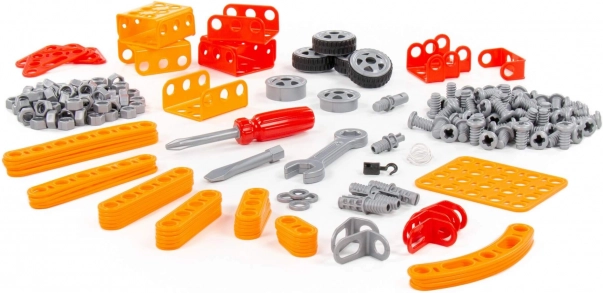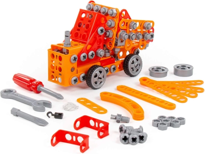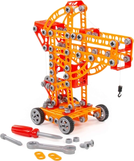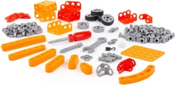 De bouwset Kleine Ingenieur met 235 onderdelen van fabrikant Polesie is speciaal gemaakt voor kleine ingenieurs. De onderdelen zijn uitgevoerd als stevige strips met gaten. De strips worden met schroeven en moeren aan elkaar bevestigd. De set bevat een gedetailleerde handleiding waarmee je de op de verpakking afgebeelde modellen kunt bouwen. Het spelen met de bouwset is niet beperkt tot bouwen volgens de instructies. Kleine ingenieurs kunnen hun fantasie de vrije loop laten en iets nieuws creëren, en zo hun creatieve potentieel ontdekken. De verschillende typen bouwsets hebben verschillende thema’s, maar zijn volledig compatibel. Kinderen kunnen zo een hele collectie modellen samenstellen!