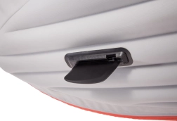 Twee opblaasbare zitjes met rugleuningen en tweestands voetsteunen maken het mogelijk de zithouding aan te passen aan verschillende lengtes en peddelstijlen.