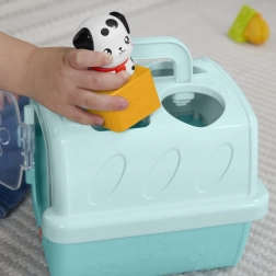 Deze kleurrijke sorter combineert leren en spelen: kinderen sorteren verschillende vormen, openen het deurtje van de transporter en beginnen opnieuw. Bij elke poging versterken ze op natuurlijke wijze hun oog-handcoördinatie en geduld. Het schattige dierenmotief nodigt uit tot rollenspellen en prikkelt de fantasie.