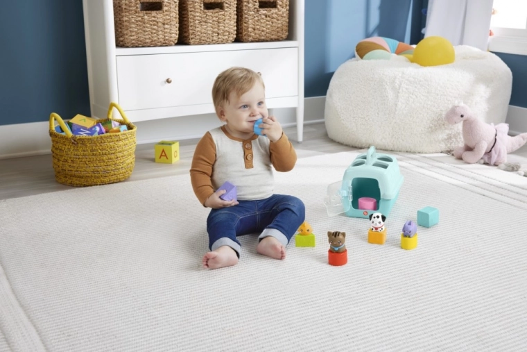 Blokjes met dierenvriendjes stimuleren de verbeelding en de eerste sociale vaardigheden bij het spelen van zorg voor huisdiertjes.