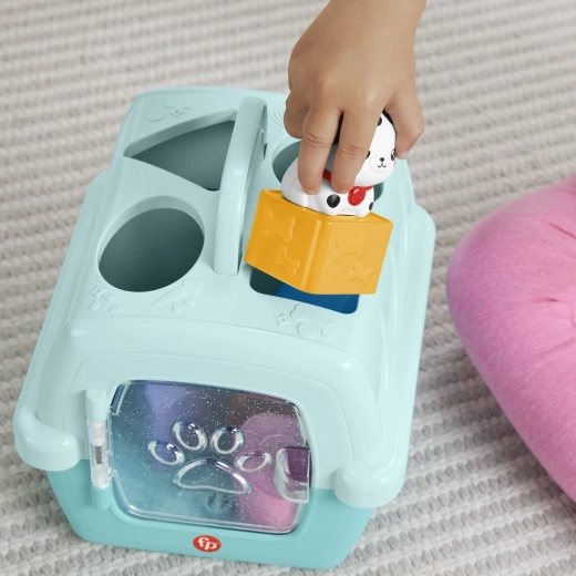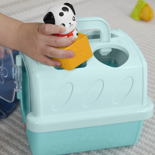 De schattige sorteerkist in de vorm van een draagbare transporter met diertjes van FISHER‑PRICE biedt slimme speelpret voor peuters. Kinderen stoppen blokjes in de passende openingen en ontwikkelen zo hun fijne motoriek, logisch denken en herkenning van vormen en kleuren. Dankzij het praktische handvat nemen ze het speelgoed overal gemakkelijk mee naartoe.
