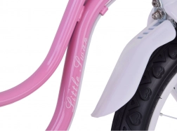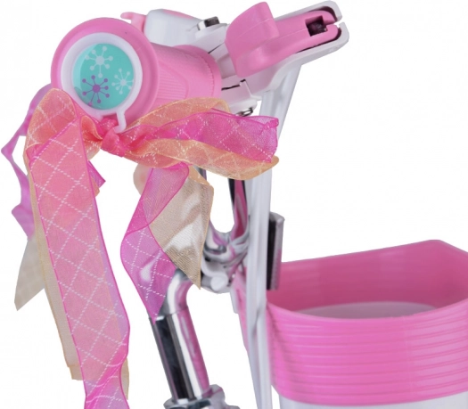 Het ergonomische stuur met zachte handvatten, bel en franjes maakt jonge fietsers blij, terwijl de combinatie van een voorrem met remklauw en een achterste trommelrem zorgt voor soepel en veilig remmen. Zijwieltjes geven stabiliteit tijdens het leren en het praktische mandje biedt ruimte voor kleinigheden. Het rijcomfort wordt aangevuld met een zadel met zachte vulling, in hoogte verstelbaar, met een handgreep om te leiden.
