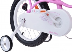 ROYALBABY Little Swan 14" is een charmante kinderfiets in een roze-witte combinatie, ontworpen voor de eerste ritjes met maximale nadruk op veiligheid, comfort en eenvoudig leren. Het lichte stalen frame vergemakkelijkt opstappen en de hoge banden met antislipprofiel zorgen voor zeker contact met het oppervlak.