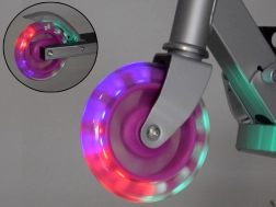 Tijdens het rijden lichten de wielen op dankzij magnetische energie, zonder batterijen. Het kind is beter zichtbaar en het rijden wordt nog leuker.