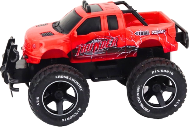 De rode op afstand bestuurbare off-road auto in schaal 1:18 fascineert met zijn robuuste constructie en gedetailleerde ontwerp. Met massieve wielen biedt het uitstekende stabiliteit en grip op verschillende terreinen. De carrosserie, bumpers en koplampen geven de auto een realistisch uiterlijk.