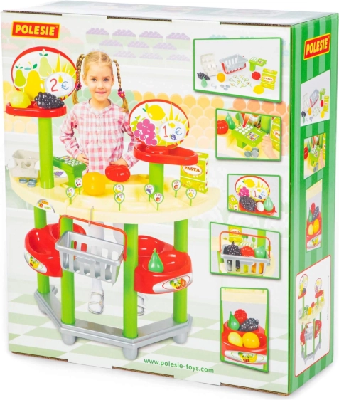 Winkeltje spelen stimuleert communicatie, rekenen, de fijne motoriek en logisch denken. De stabiele constructie van niet-toxisch plastic is veilig en duurzaam voor dagelijks spel. Dankzij de doordachte hoogte van de toonbank 87 cm is de set comfortabel voor kinderen in de kleuterleeftijd.
