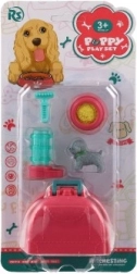 De set bevat bakjes en een kam waarmee kinderen complete verzorging voor hun hondje kunnen uitvoeren.