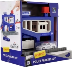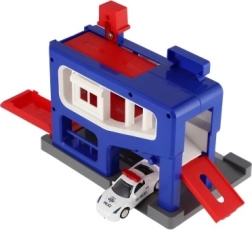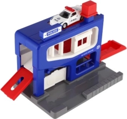 De set bevat een garage met gedetailleerde elementen en een autootje. Kinderen kunnen politie en boeven spelen en racen, en het autootje in de garage laten rijden. De garage is ontworpen voor kinderen vanaf 3 jaar en de compacte afmetingen maken het eenvoudig om op te bergen in de kamer of op tafel.