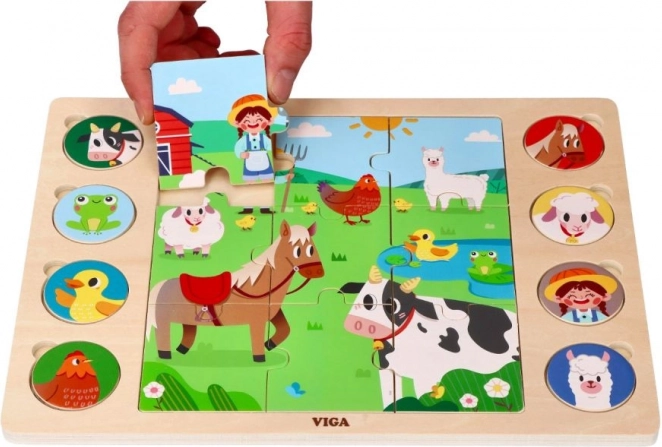 Viga houten puzzel Zoek op schaduw – boerderij, 17 stukken