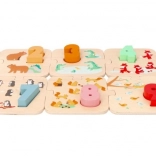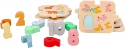 Het speelgoed is geïnspireerd op de Montessori-principes – kinderen leren in hun eigen tempo, zintuiglijk en via praktische activiteiten. De puzzel ontwikkelt oog-handcoördinatie, concentratie en visuele waarneming.