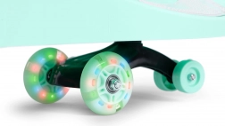 Rubberen wieltjes zorgen voor een soepele en stille rit zonder de vloer te beschadigen, terwijl LED-diodes in de wielen oplichten tijdens het rijden en de zichtbaarheid in de schemering vergroten. De ergonomisch gevormde zitting en antislip oppervlakken voor de voeten verhogen comfort en veiligheid. Inclusief een trek-/geleideriem en de mogelijkheid om zowel vooruit als achteruit te rijden.