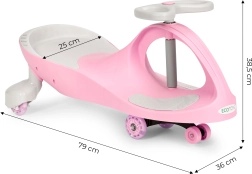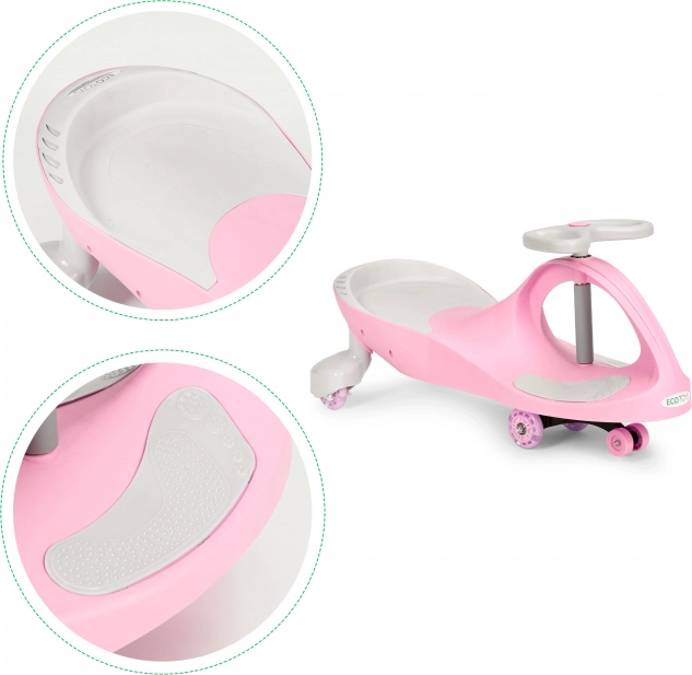 Een speciaal mechanisme maakt wegrijden mogelijk door afwisselend het stuur naar links en rechts te bewegen. Kinderen trainen spelenderwijs hun balans en coördinatie terwijl ze genieten van een soepele rit, zowel binnen als buiten.
