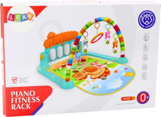 Kleurige en zachte mat biedt comfort en veiligheid tijdens het spelen. Het kind kan met de voetjes tegen het pianotje in de basis van de mat trappen, dat vrolijke geluiden maakt, of met de handjes op het pianotje spelen en zo spieren en hand-oogcoördinatie ontwikkelen. Boven de mat bevindt zich een boog met speeltjes die kunnen worden vastgepakt en geschud, wat het zicht en de tast van het kind stimuleert.