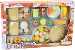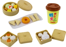 Deze set bevat alles wat kleine handjes nodig hebben om een smakelijk, denkbeeldig ontbijt te bereiden. Inclusief kleurrijke en functionele voedselbakjes, een stijlvolle beker voor de ochtendkoffie om volwassenen na te doen, verschillende soorten groenten die ze kunnen snijden en serveren, kant-en-klare hapjes die er echt uitzien, elegante bordjes en eetstokjes om te leren eten in Aziatische stijl.