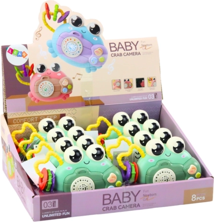 Deze groene krab is uitgerust met ingebouwde rammelaars die prettige geluidseffecten produceren ter stimulatie van het gehoor van het kind. Hij is gemaakt van hoogwaardige, veilige materialen en is daardoor volledig veilig voor kinderen. Ideaal voor de ontwikkeling van motorische vaardigheden en auditieve waarneming.