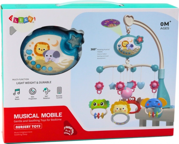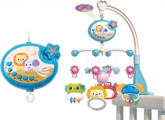 Muzikale mobiel met sterrenprojector en afstandsbediening voor het ledikant – Blauw