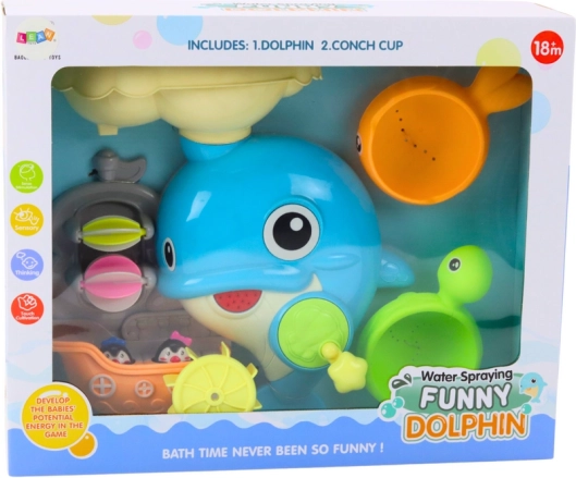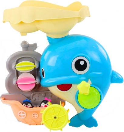 Activeer de dolfijn door er water over te gieten, waardoor onderdelen in beweging komen voor vermaak tijdens het baden.
