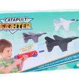 Dit product combineert een pistool voor foam pijltjes met een vliegtuigwerper, wat kinderen verschillende speelmogelijkheden biedt.