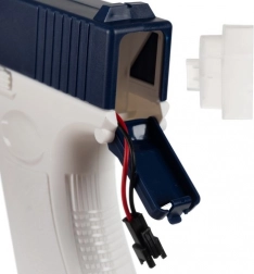 Houd de trekker ingedrukt en het pistool vuurt continu zonder handmatig pompen. De meegeleverde oplaadbare accu zorgt voor tot 50 minuten speeltijd en gemakkelijk opladen via USB.