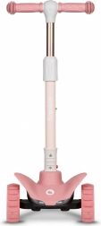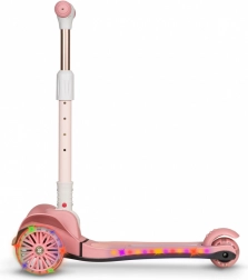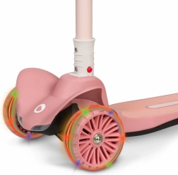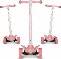 De LIONELO Timmy Pink Rose is een lichte en veilige kinderstep, ontworpen voor comfortabele eerste ritten. Twee grote voorwielen en één achterwiel zorgen voor uitstekende stabiliteit, terwijl lean-to-steer (sturen door te leunen) bochtenwerk ondersteunt en de ontwikkeling van balans en motoriek bevordert. LED-verlichting in de wielen wordt geactiveerd door beweging en de LED-deckverlichting verhoogt zowel de zichtbaarheid als het plezier.