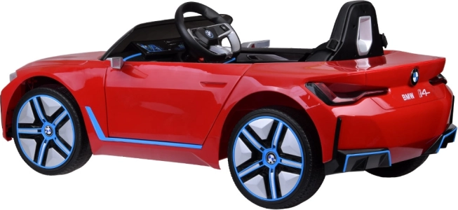 De gelicentieerde BMW i4 is een elektrische kinderauto die een sportieve look combineert met doordachte uitrusting voor comfortabel en veilig rijden. Voor een soepele rit zorgen twee 12V-aandrijfmotoren (achteras) aangevuld met hulpmotoren op de vooras, gevoed door een 12V 7Ah-accu. Twee selecteerbare snelheden maken het mogelijk het tempo aan te passen voor zowel beginners als gevorderde kleine bestuurders.