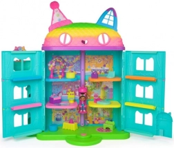 Het betoverende GABBY'S DOLLHOUSE party kattenhuis (ca. 60 cm) barst van kleur, ideeën en interactieve fun. Kinderen kunnen met de kattenlift zes themakamers verkennen en door het dak te draaien de geheime zolder onthullen. Na een druk op de knop hoor je tot 10 favoriete geluiden en zinnen uit de serie, die de speelsfeer versterken.