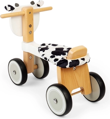 Ervaar uren plezier met de loopfiets in de vorm van een koetje, ideaal voor kleintjes vanaf één jaar. Dit speeltje stimuleert niet alleen de creativiteit van kinderen maar helpt ook bij het ontwikkelen van balans, coördinatie en beenspierkracht. Dankzij de rubberen wielen biedt het een stille en soepele rit op alle oppervlakken. De loopfiets is gemaakt van hoogwaardig hout, wat zorgt voor duurzaamheid en veiligheid tijdens het spelen.